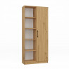 Regał do salonu to stylowy i funkcjonalny mebel, który doskonale uzupełni każde wnętrze. Wykonany z wysokiej jakości materiałów, łączy nowoczesny design z praktycznymi rozwiązaniami. Regał posiada cztery otwarte półki, idealnych do eksponowania książek, dekoracji lub pamiątek, oraz zamykaną szafkę, która umożliwia dyskretne przechowywanie rzeczy. Naturalna kolorystyka drewna nadaje mu ciepły i przytulny wygląd, dzięki czemu wpasuje się zarówno w klasyczne, jak i nowoczesne aranżacje. To doskonały wybór dla osób poszukujących mebla łączącego estetykę z funkcjonalnością.