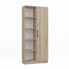 Regał do salonu w kolorze dąb sonoma to funkcjonalny i estetyczny element wyposażenia wnętrza, który doskonale wpisuje się w nowoczesne aranżacje. Mebel posiada cztery przestronne półki, idealne do wyeksponowania książek, dekoracji czy roślin, a także praktyczną zamykaną szafkę, która umożliwia ukrycie mniej atrakcyjnych przedmiotów. Solidna konstrukcja oraz elegancki uchwyt dodają regałowi nowoczesnego charakteru, sprawiając, że jest on nie tylko praktyczny, ale także stylowy. Dzięki neutralnej kolorystyce regał świetnie komponuje się z różnymi stylami wnętrzarskimi, od minimalistycznych po klasyczne.