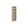 Wąski regał do salonu z czterema półkami to idealne rozwiązanie dla osób poszukujących praktycznego, a jednocześnie stylowego elementu wyposażenia wnętrza. Wykonany z trwałej płyty meblowej w odcieniu dębu sonoma, doskonale wkomponuje się w nowoczesne oraz klasyczne aranżacje. Cztery funkcjonalne półki oferują wystarczająco dużo miejsca na przechowywanie książek, dekoracji czy innych przedmiotów, pomagając w utrzymaniu porządku i organizacji przestrzeni. Dzięki swojej smukłej konstrukcji regał sprawdzi się zarówno w małych, jak i większych pomieszczeniach, nadając im elegancki i uporządkowany charakter.