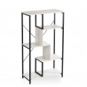 Przedstawiamy nowoczesny regał w eleganckim połączeniu bieli i czerni, idealny do współczesnych wnętrz. Regał wykonany z wysokiej jakości materiałów, łączy stylowe białe półki z solidnym, czarnym metalowym stelażem, tworząc funkcjonalny i estetyczny mebel. Asymetryczny design pięciu przestronnych półek oferuje mnóstwo miejsca na książki, dekoracje i inne przedmioty, pomagając utrzymać porządek w salonie, biurze czy sypialni. Innowacyjny kształt sprawia, że regał jest nie tylko praktyczny, ale również stanowi stylowy dodatek, który dodaje charakteru każdemu pomieszczeniu. Stabilna konstrukcja zapewnia długotrwałe użytkowanie, a nowoczesny design wpisuje się w najnowsze trendy wnętrzarskie, dodając wnętrzu elegancji i nowoczesnego wyglądu. Ten regał to idealne rozwiązanie dla osób ceniących sobie styl i praktyczność w jednym. Doskonale nadaje się do eksponowania ulubionych przedmiotów, tworząc przytulną i uporządkowaną przestrzeń w każdym pomieszczeniu.