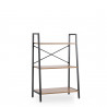 Regał składa się z trzech przestronnych półek, rozmieszczonych na różnych wysokościach, co pozwala na kreatywne zagospodarowanie przestrzeni i estetyczną ekspozycję przedmiotów. Metalowe ramy gwarantują stabilność, a drewniane półki dodają elegancji i nowoczesnego stylu. Dzięki swojej wszechstronności, regał ten doskonale sprawdzi się nie tylko w salonie, ale również w innych pomieszczeniach, takich jak biuro, gabinet czy sypialnia.
