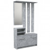 Garderoba do przedpokoju w nowoczesnym stylu to idealne rozwiązanie dla osób, które cenią funkcjonalność i estetykę w swoim wnętrzu. Zestaw ten składa się z praktycznej szafki na buty, pojemnych półek oraz panelu z wieszakami, które umożliwiają wygodne przechowywanie odzieży wierzchniej. Duże lustro optycznie powiększa przestrzeń, a jego umiejscowienie zapewnia wygodę podczas codziennych przygotowań do wyjścia. Wykonana z wytrzymałych materiałów w modnym, szarym wykończeniu o strukturze betonu, garderoba ta doskonale wpisuje się w nowoczesne i industrialne aranżacje wnętrz. Dzięki kompaktowej konstrukcji jest idealna do małych i średnich przedpokojów, oferując jednocześnie dużo miejsca do przechowywania, co pozwala na utrzymanie porządku i zorganizowanej przestrzeni.
