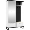Ten przedpokój to propozycja dla osób, które dysponują niewielką przestrzenią bądź lubią minimalizm. W bryle mieści się wszystko, co niezbędne, a więc półki na ubrania, buty i pudełka z akcesoriami, wieszaki na kurtki oraz lustro. To ostatnie nie zabiera dodatkowego miejsca, bo zamontowano je na froncie szafki. Pozwoli obejrzeć całą sylwetkę i optycznie powiększy przedpokój. Praktycznym dodatkiem jest też siedzisko z ekoskóry, które sprawi, że zakładanie i zdejmowanie obuwia będzie łatwiejsze. Mebel jest dostępny w kilku uniwersalnych wariantach kolorystycznych. W oczy rzucają się dodatki – haczyki, klamki i modernistyczne nóżki – tworzą ciekawe wykończenie. Wysokość mebla ułatwia sprzątanie pod nim, a użyte materiały gwarantują jakość i długą żywotność.