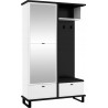 Ten przedpokój to propozycja dla osób, które dysponują niewielką przestrzenią bądź lubią minimalizm. W bryle mieści się wszystko, co niezbędne, a więc półki na ubrania, buty i pudełka z akcesoriami, wieszaki na kurtki oraz lustro. To ostatnie nie zabiera dodatkowego miejsca, bo zamontowano je na froncie szafki. Pozwoli obejrzeć całą sylwetkę i optycznie powiększy przedpokój. Praktycznym dodatkiem jest też siedzisko z ekoskóry, które sprawi, że zakładanie i zdejmowanie obuwia będzie łatwiejsze. Mebel jest dostępny w kilku uniwersalnych wariantach kolorystycznych. W oczy rzucają się dodatki – haczyki, klamki i modernistyczne nóżki – tworzą ciekawe wykończenie. Wysokość mebla ułatwia sprzątanie pod nim, a użyte materiały gwarantują jakość i długą żywotność.