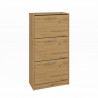 Szafka na obuwie do przedpokoju to idealne rozwiązanie dla osób, które cenią sobie porządek i funkcjonalność. Prezentowany model wykonany jest z wysokiej jakości materiałów, co zapewnia jego trwałość i długowieczność. Szafka posiada trzy pojemne szafki, które pomieszczą wiele par butów, chroniąc je przed kurzem i zniszczeniem. Dzięki kompaktowym wymiarom, mebel doskonale sprawdzi się nawet w mniejszych przestrzeniach, pomagając w optymalnym zagospodarowaniu przedpokoju. Naturalny odcień dębu artisan dodaje wnętrzu ciepła i elegancji, wpisując się w różnorodne style aranżacyjne – od klasycznych po nowoczesne. Solidne uchwyty ułatwiają otwieranie szafek, a prosty design sprawia, że szafka jest nie tylko praktyczna, ale i estetyczna. To doskonały wybór dla każdego, kto pragnie wprowadzić do swojego domu harmonię i ład, jednocześnie dbając o stylowy wygląd swojego przedpokoju.