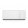 Ta obszerna, nowoczesna komoda w odcieniu białym to kwintesencja elegancji w minimalistycznym wydaniu, idealna dla każdego salonu. Charakteryzuje się czterema zaokrąglonymi drzwiami, które nadają jej delikatnego, ale jednocześnie wyraźnego charakteru. Wykonana z wysokiej jakości materiałów, z matowym wykończeniem, jest nie tylko trwała, ale również łatwa w utrzymaniu. Dzięki prostej bryle i braku widocznych uchwytów, wprowadza do wnętrza poczucie porządku i nowoczesnej elegancji. Wewnątrz znajduje się wystarczająco dużo miejsca do przechowywania, pozwalające na zorganizowanie domowej elektroniki, gier, książek czy innych przedmiotów. Stylowa i funkcjonalna, ta komoda to doskonały wybór dla osób ceniących sobie połączenie praktycznego rozwiązania z ponadczasowym designem.