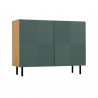 Stylowa komoda do salonu w odcieniu eleganckiej zieleni to doskonały wybór dla osób ceniących nowoczesny design i funkcjonalność. Wykonana z wysokiej jakości materiałów, charakteryzuje się wyjątkowym frontem ozdobionym geometrycznym wzorem, który przyciąga wzrok i dodaje wnętrzu charakteru. Dzięki solidnym nóżkom oraz pojemnym szafkom, komoda zapewnia nie tylko estetykę, ale również praktyczne miejsce do przechowywania. Idealnie wpasuje się zarówno w nowoczesne, jak i klasyczne aranżacje salonu, podkreślając ich unikalny styl.
