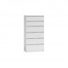 Nowoczesna biała komoda do sypialni to idealne rozwiązanie dla osób ceniących funkcjonalność i elegancję. Komoda wyposażona jest w sześć pojemnych szuflad, które oferują dużo miejsca na przechowywanie ubrań, bielizny oraz innych akcesoriów, pomagając w utrzymaniu porządku w sypialni. Jej minimalistyczny design z gładkimi frontami bez uchwytów podkreśla nowoczesny charakter, a uniwersalna biała kolorystyka dodaje wnętrzu świeżości i lekkości. Wykonana z wysokiej jakości materiałów, komoda gwarantuje trwałość i solidność, będąc praktycznym i stylowym elementem każdej sypialni. To doskonały wybór dla osób, które szukają nowoczesnego mebla, który nie tylko spełni swoją funkcję, ale także doda wnętrzu elegancji i harmonii.