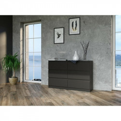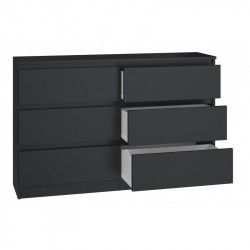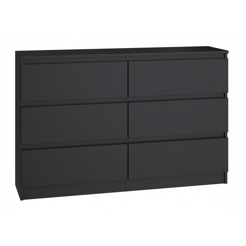 Nowoczesna czarna komoda do sypialni to elegancki i funkcjonalny mebel, który doskonale wpasuje się w każde wnętrze. Komoda wyposażona jest w sześć przestronnych szuflad, które oferują mnóstwo miejsca do przechowywania ubrań, bielizny oraz innych akcesoriów. Jej minimalistyczny design z gładkimi, matowymi frontami bez uchwytów podkreśla nowoczesny charakter, który świetnie komponuje się z różnymi stylami aranżacji, od industrialnych po klasyczne. Wykonana z wysokiej jakości materiałów, komoda gwarantuje trwałość i solidność, zapewniając jednocześnie praktyczne rozwiązanie do przechowywania. Czarne wykończenie dodaje wnętrzu głębi i elegancji, czyniąc komodę stylowym elementem każdej sypialni.
