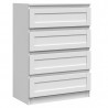 Oferujemy nowoczesną komodę do sypialni w eleganckim białym wykończeniu, która łączy styl z funkcjonalnością. Ta atrakcyjna komoda wyposażona jest w cztery pojemne szuflady, idealne do przechowywania ubrań, bielizny i innych osobistych akcesoriów, co ułatwia organizację przestrzeni. Jej minimalistyczny design z subtelnymi liniami i gładkimi frontami dodaje lekkości i świeżości każdemu wnętrzu. Solidna konstrukcja zapewnia trwałość, a system cichego otwierania szuflad zwiększa komfort codziennego użytku. Ta komoda to doskonały wybór dla tych, którzy pragną stworzyć funkcjonalną i estetyczną przestrzeń w swojej sypialni.