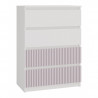 Odkryj nowoczesny styl i funkcjonalność z naszą elegancką komodą do sypialni, która łączy subtelny, biały górny panel z urokliwymi, pionowymi wzorami w pastelowym odcieniu różu na dolnych frontach. Ta stylowa komoda oferuje cztery pojemne szuflady, idealne do przechowywania ubrań, bielizny i drobiazgów, co ułatwia utrzymanie porządku. Wykonana z wysokiej jakości materiałów, zapewnia solidność i trwałość, a płynne i ciche otwieranie szuflad zwiększa komfort codziennego użytkowania. Jej unikalny design doskonale wpasuje się w różnorodne aranżacje wnętrz, dodając świeżości i nowoczesności każdemu pomieszczeniu. To idealny wybór dla osób, które cenią piękno, funkcjonalność i styl w swojej sypialni.