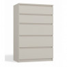 Elegancka komoda do sypialni w kaszmirowym kolorze to idealne rozwiązanie dla osób szukających nowoczesnego i funkcjonalnego mebla. Komoda posiada pięć przestronnych szuflad, które oferują mnóstwo miejsca do przechowywania ubrań, bielizny oraz innych niezbędnych przedmiotów. Gładkie fronty bez uchwytów podkreślają minimalistyczny design, co sprawia, że mebel świetnie komponuje się z różnymi stylami aranżacji wnętrz, od nowoczesnych po klasyczne. Wykonana z trwałych materiałów, komoda gwarantuje solidność i długowieczność. Jest to idealny dodatek do sypialni, łączący w sobie estetykę i praktyczność, który doda wnętrzu elegancji i harmonii.