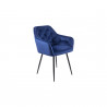Eleganckie krzesło tapicerowane w głębokim granatowym kolorze, wykonane z wysokiej jakości weluru, stanowi doskonałe połączenie nowoczesnego designu i komfortu. Miękka i przyjemna w dotyku tapicerka zapewnia wyjątkową wygodę siedzenia, a stylowe pikowania na oparciu dodają mu luksusowego charakteru. Solidne, metalowe nogi w czarnym kolorze nie tylko podkreślają nowoczesną estetykę, ale także gwarantują stabilność i trwałość mebla. Idealne zarówno do salonu, jak i jadalni, to krzesło wprowadza do wnętrza wyrafinowany akcent, podnosząc jego estetykę i funkcjonalność.