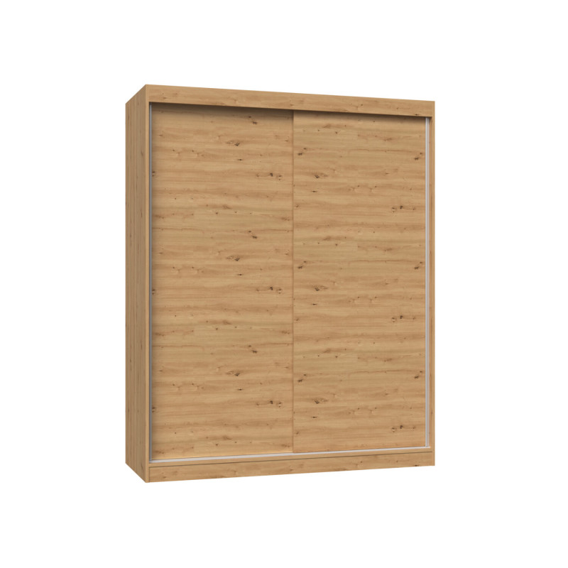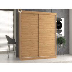 Nowoczesna szafa przesuwna w kolorze dąb artisan to idealne rozwiązanie do sypialni lub pokoju, łączące styl z funkcjonalnością. Jej przesuwane drzwi zapewniają łatwy dostęp do wnętrza, a jednocześnie oszczędzają przestrzeń w pomieszczeniu. Wnętrze szafy oferuje przestronne półki i drążek na ubrania, co pozwala na wygodne przechowywanie odzieży i akcesoriów. Naturalny odcień dębu artisan wprowadza ciepły i przytulny klimat do wnętrza, doskonale komponując się z różnymi stylami aranżacji. Szafa charakteryzuje się solidnym wykonaniem, co gwarantuje jej trwałość i estetyczny wygląd przez wiele lat. Idealna do nowoczesnych, minimalistycznych wnętrz.