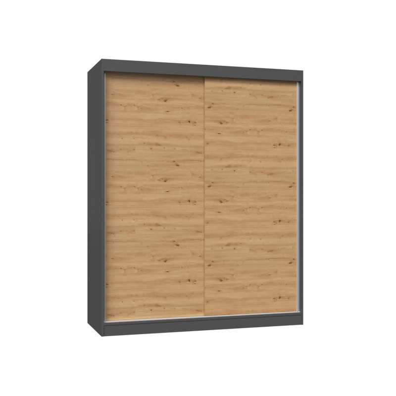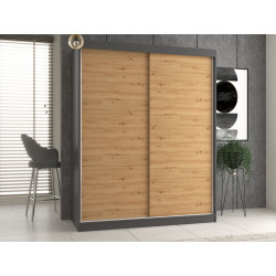 Szafa przesuwna w kolorze dąb artisan z antracytowymi akcentami to doskonałe rozwiązanie do nowoczesnej sypialni lub pokoju. Charakteryzuje się eleganckim designem, który łączy naturalny urok dębu artisan z nowoczesnym wykończeniem w kolorze antracytu. Przesuwane drzwi ułatwiają dostęp do przestronnego wnętrza szafy, gdzie znajduje się miejsce na ubrania oraz akcesoria. Solidna konstrukcja i estetyczne wykonanie gwarantują trwałość oraz wyjątkowy wygląd, który harmonijnie wkomponuje się w różne aranżacje wnętrz. Idealna dla osób ceniących styl i funkcjonalność.