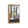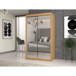 Nowoczesna szafa przesuwna z lustrzanymi drzwiami w odcieniu dębu artisan to idealne rozwiązanie do sypialni lub pokoju. Jej lustro nie tylko powiększa optycznie przestrzeń, ale także dodaje wnętrzu elegancji. Przesuwane drzwi zapewniają wygodne użytkowanie, a wewnętrzne półki i drążek na ubrania gwarantują funkcjonalność i łatwość w organizacji przestrzeni. Wykonana z wysokiej jakości materiałów, szafa łączy trwałość z estetyką, idealnie komponując się z nowoczesnymi aranżacjami wnętrz. To stylowy i praktyczny wybór dla każdego, kto ceni sobie porządek i nowoczesny design.