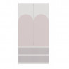 Elegancka szafa do sypialni lub pokoju, wyróżniająca się subtelnym designem, który łączy funkcjonalność z estetyką. Fronty szafy zdobione są delikatnym wzorem w pastelowym odcieniu różu, co nadaje wnętrzu ciepły i przytulny charakter. Szafa oferuje przestronne wnętrze z półkami, drążkiem na ubrania oraz dwoma praktycznymi szufladami, które zapewniają dużo miejsca do przechowywania odzieży i akcesoriów. Doskonała do nowoczesnych aranżacji, szafa ta wprowadza do pomieszczenia lekkość i harmonię, będąc jednocześnie stylowym elementem wystroju.