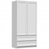 Elegancka szafa do sypialni w klasycznym, białym kolorze to idealne rozwiązanie dla osób ceniących prostotę i funkcjonalność. Wykonana z wysokiej jakości materiałów, zapewnia trwałość i wytrzymałość na lata. Dzięki swojej kompaktowej formie, doskonale wpasuje się zarówno w małe, jak i większe pomieszczenia. Szafa oferuje przestronne wnętrze z licznymi półkami oraz drążkiem na ubrania, co umożliwia uporządkowanie garderoby i maksymalne wykorzystanie dostępnej przestrzeni. Dodatkowe szuflady na dole to idealne miejsce na przechowywanie bielizny, akcesoriów czy innych drobnych przedmiotów. Minimalistyczny design sprawia, że szafa harmonijnie komponuje się z różnymi stylami wnętrz, od nowoczesnych po tradycyjne. Jest to praktyczny mebel, który łączy w sobie estetykę z funkcjonalnością, będąc niezastąpionym elementem wyposażenia każdego domu.