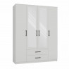 Elegancka i funkcjonalna szafa do sypialni lub pokoju to idealne rozwiązanie dla osób poszukujących praktycznego i stylowego mebla. Model w białym kolorze wyposażony jest w cztery drzwi, z czego dwa centralne posiadają lustra, które optycznie powiększają pomieszczenie. Szafa oferuje przestronną sekcję z drążkiem na wieszaki, półki oraz dodatkowe szuflady, zapewniając dużo miejsca na przechowywanie odzieży i akcesoriów. Nowoczesne uchwyty oraz solidne wykonanie z wysokiej jakości materiałów gwarantują trwałość, a biały kolor doskonale komponuje się z różnymi stylami aranżacyjnymi.