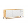Wyposażona w trzy szuflady oraz dwie szafki z drzwiami, komoda ta oferuje obfitość miejsca do przechowywania, które pomoże zorganizować przestrzeń życiową w elegancki sposób. Czarne, subtelne uchwyty są nie tylko praktyczne, ale i stanowią stylowy element dekoracyjny, który doskonale komplementuje minimalistyczny design komody.