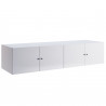 Na zdjęciu przedstawiona jest elegancka, długa nadstawka do szafy wykonana z melaminowanej płyty wiórowej, która łączy w sobie funkcjonalność i nowoczesny design. Mebel składa się z dwóch równomiernie rozmieszczonych segmentów, każdy z osobnymi, dwudrzwiowymi frontami, co zapewnia wygodny dostęp do przechowywanych przedmiotów oraz pozwala na utrzymanie porządku dzięki podziałowi na sekcje.