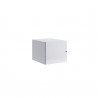 Na zdjęciu zaprezentowano minimalistyczną nadstawkę do szafy, wykonaną z melaminowanej płyty wiórowej. Jest to mebel o kubistycznej formie, którego prosta konstrukcja i jednolita, biała kolorystyka wpisują się w nowoczesne standardy designu wnętrz. Nadstawka ta, dzięki swojej kompaktowej wielkości, jest idealnym rozwiązaniem do zwiększenia przestrzeni przechowywania w istniejących szafach.