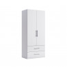 Metalowe uchwyty wyróżniają się na tle białej szafy, dodając nowoczesnego, ale subtelnego akcentu. Prosta i czysta linia szafy sprawia, że pasuje ona do każdej sypialni, garderoby czy przedpokoju, stanowiąc doskonały element wyposażenia współczesnego domu.