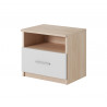 Parametry Wymiary zewnętrzne Szerokość [cm] - 51 Głębokość [cm] - 37 Wysokość [cm] - 45 Podstawowe ID Produktu - 15060 Kolorystyka - biały Kolorystyka - brąz Front Materiał frontów - płyta wiórowa Kolor frontów - dąb sonoma Rodzaj obrzeża frontu - ABS Grubość frontów [mm] - 0.5 Uwagi - Front w kolorystyce dąb sonoma i biały. Korpus Materiał korpusu - płyta wiórowa Kolor korpusu - dąb sonoma Rodzaj obrzeża korpusu - ABS Grubość korpusu [mm] - 16 Grubość obrzeży korpusu [mm] - 0.5 Szuflada Szuflada - Tak Ilość szuflad - 1 Plecy Materiał pleców - płyta HDF Grubość pleców [mm] - 3 Uchwyt Uchwyt - Tak
