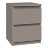 Elegancki stolik nocny w nowoczesnym stylu to idealny dodatek do każdej sypialni. Wykonany w neutralnym, beżowym kolorze, ten funkcjonalny mebel wyposażony jest w dwie pojemne szuflady, które zapewniają wystarczającą przestrzeń do przechowywania drobiazgów potrzebnych przy łóżku. Prosty, minimalistyczny design z gładkimi frontami doskonale wpisuje się w współczesne aranżacje wnętrz, dodając pomieszczeniu elegancji i harmonii. Stolik nocny łączy w sobie trwałość, estetykę i praktyczność, dzięki czemu sprawdzi się zarówno w małych, jak i dużych sypialniach, wnosząc do nich ciepło i funkcjonalność.
