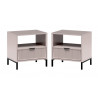 Ich subtelny kolor kaszmirowy wnosi do wnętrza spokój i harmonię, tworząc atmosferę luksusu i elegancji. Stoliki posiadają praktyczną szufladę z subtelnym, ale wyrazistym zdobieniem, które dodaje im charakteru, a także otwartą półkę, idealną do przechowywania książek czy organizacji nocnych akcesoriów.