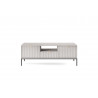 Szafka RTV to dopełnienie niemal każdego salonu. Z kolekcją Aura będzie również ozdobą i chlubą Twojego domu. Wpisuje się idealnie w stylistykę całej kolekcji poprzez prostą bryłę, stonowaną, ale charakterystyczną kolorystykę, a przede wszystkim ryflowane fronty. Ten designerski akcent pozwoli Ci zaaranżować wnętrze, które wyróżni się na tle wszechobecnej bieli. Wysokie nogi nadają szafce nieco przemysłowego charakteru i ułatwiają sprzątanie pod meblem. Szafki i szuflada zapewniają niezbędne miejsce do przechowywania ubrań bądź drobnych rzeczy osobistych, co pozwoli utrzymać porządek w domu. Pomyślano również o wysokiej jakości wykończeniu z płyty laminowanej – będziesz cieszyć się tą szafką przez długie lata.