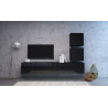 Zapraszamy do odkrycia naszego zestawu czarnych mebli do salonu, który jest kwintesencją nowoczesnego stylu i elegancji. Ten wyrafinowany zestaw składa się z niskiej, długiej szafki RTV i dwóch kwadratowych półek wiszących, tworząc idealną równowagę między funkcjonalnością a nowoczesnym designem.